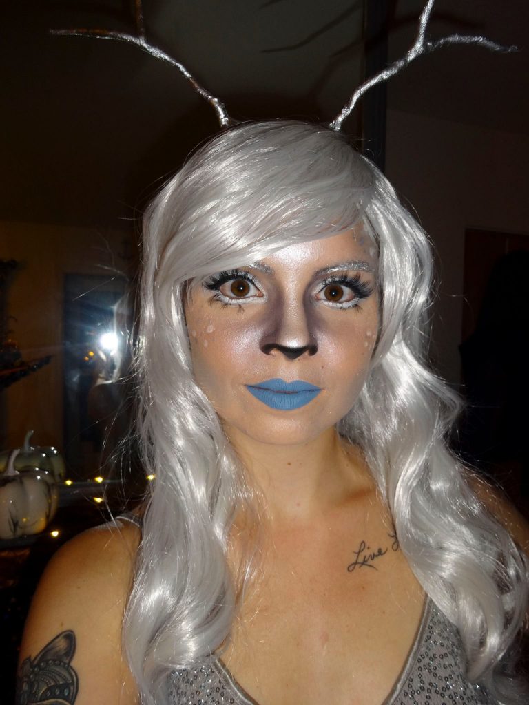 The deer Halloween costume has been pretty popular for a couple years now, so I wanted to put my spin on it and be Harry Potter’s patronus! This was so much fun to do! I had a few silver items already in my wardrobe, so I got myself a silver wig and DIY’d my antlers. I LOVE how it turned out!
