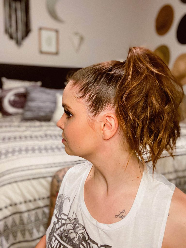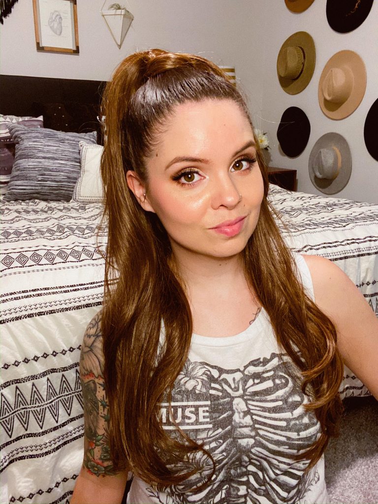 So not cute, but doesn’t leave me with a whole lot of options, ya know? Especially if I haven’t given my hair some movement and body by curling it with a curler or straightener. Also, I just wanted to give you guys a little preview of these and my hair isn’t perfect by any means. I had a little extra time during this quarantine and thought I’d play a bit. So please excuse any bumps or gaps in my own hair, thanks!