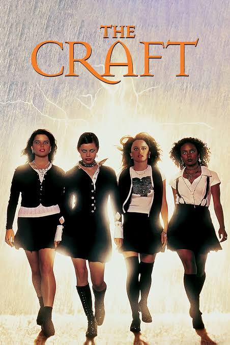 If there’s one movie that cemented the 90s witch aesthetic, it’s The Craft. Think plaid skirts, knee-high socks, chokers, black lipstick, and endless layers of Catholic schoolgirl uniforms turned grunge magic. Nancy’s rebellious energy and Rochelle’s sleek style are pure alternative fashion goals.