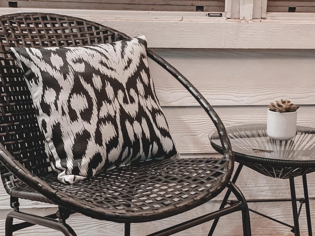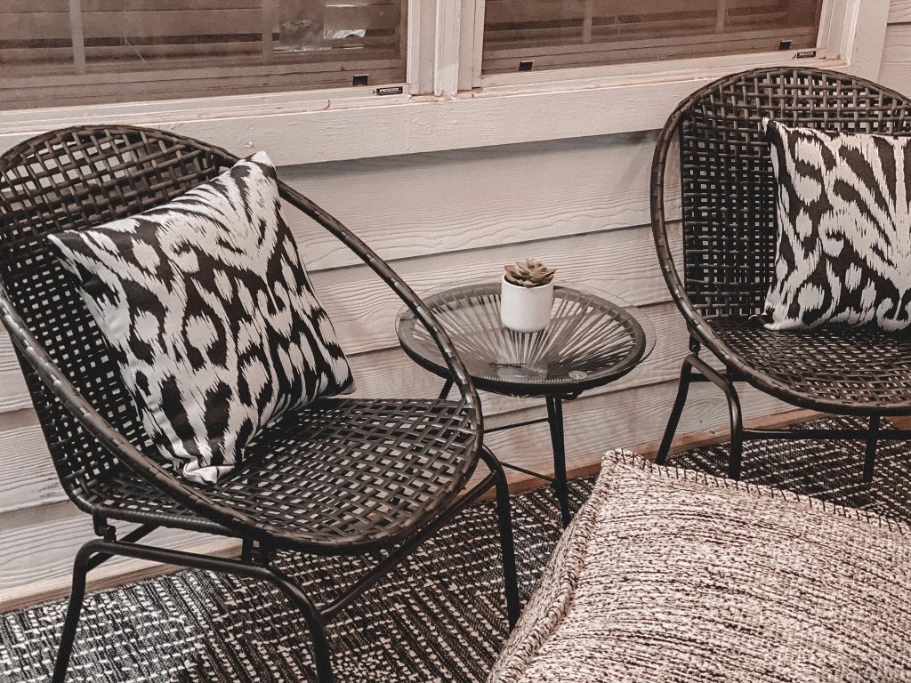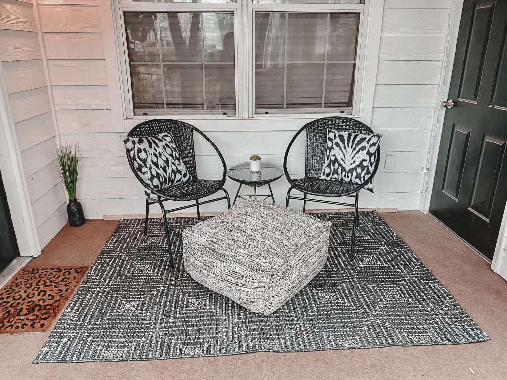 Most everything is from Target with the exception of the two faux plants (Big Lots) and the leopard print mat (IKEA). I absolutely LOVE how this turned out! I can’t wait until it stops raining and warms up a bit so I can be outside more. It has warmed up enough a couple times that I have gotten to sit out and eat my dinner and I can’t wait until it becomes a regular thing… until it gets too unbearably hot to sit out there in the summertime haha!